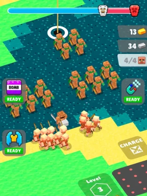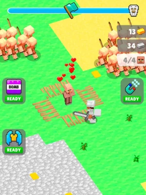 Despite the fact that this is the army tycoon game, you can create your polytopia. There are villages of craftsman in this blocks world, so you are not only a war commander, but also a castle crafter. Mine craft resources and improve your units. Upgrade your troops equipment in the blacksmith’s by silver and gold. Enjoy your time giving commands to craftsman building craft.