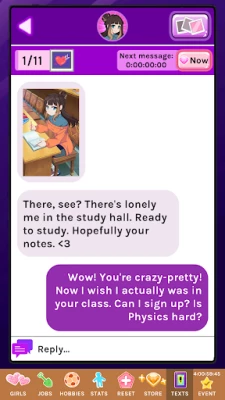 Boost your cash flow and stats by working on various jobs and hobbies. Improve your chances with the lovely ladies who are eager to get to know you better.