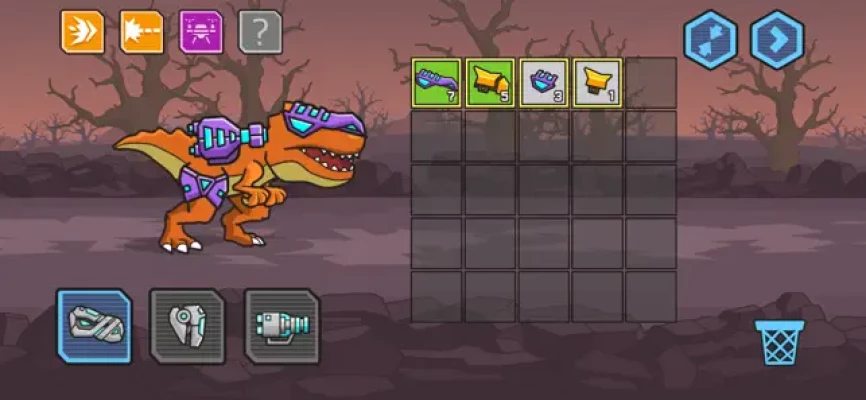 AttackThe first thing you’ll do in CyberDino is attack. In attack mode, you roam through a series of battles against robots. You have 3 abilities to use with your default attack. There are 4 separate regions, each new place bringing tougher enemies, and a final boss at the end.