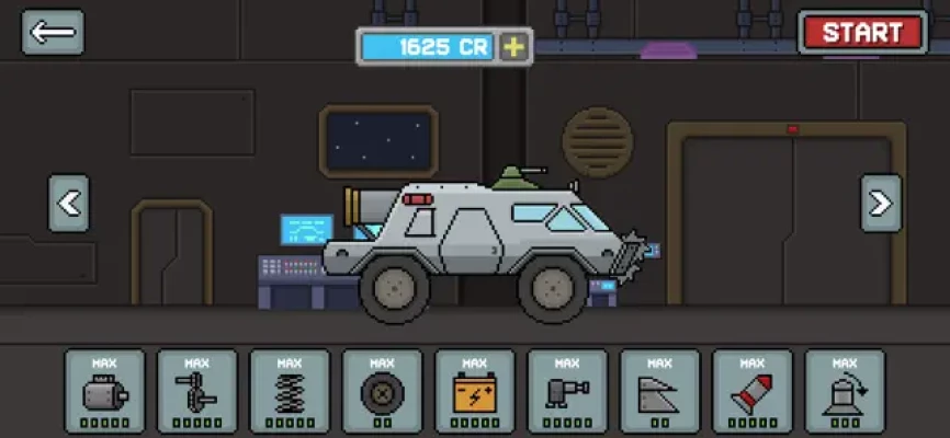 Explore all the planets of a distant galaxy on your rover, conquer the lack of roads and fight off the monsters and mutants who captured the peaceful colonists. This will help you Professor Lee. He will bring up to date and help pump the transport in the hangar. Want an adventure? Want to play with cars in space? Or you like pixel-art games. Then this game is for you!