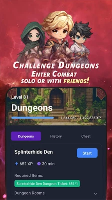 Experience true idle MMO gameplay where progress continues even when you are not playing. Battle through dungeons, defeat epic bosses, collect and upgrade heroes, and craft powerful gear. Compete in global events and rise to the top.