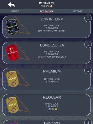 - Draft - Open unlimited number of packs with over 2000 players - ALL Icon, Inform & other special players are available! - Collections! - Squad Builder! - Match simulation! - Transfer Market - Squad builder challenges (SBC)