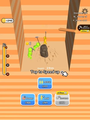 Become the master of mining and watch as your diggers diligently work their way through layers of soil, unearthing precious gems and resources. As you delve deeper into the ground, your earnings will multiply, allowing you to upgrade your workers, enhancing their power and income. With each upgrade, your team's efficiency will skyrocket, propelling you further into the depths with every dig.