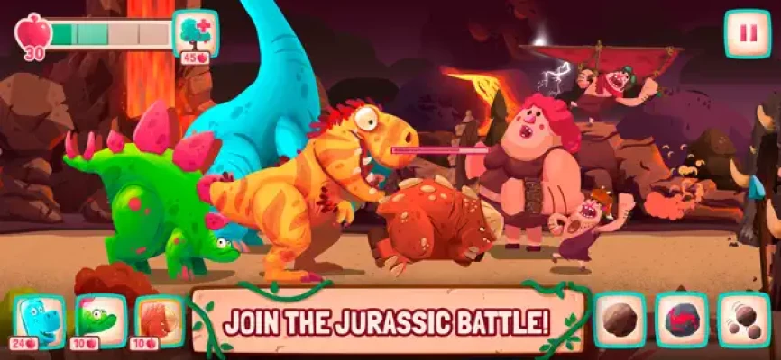 Lead the dinosaurs in a Jurassic tug-of-war battle against primitive humans to defend your egg from their merciless appetite. Build ground defenses, deploy aerial attacks, and summon dinosaurs to avoid extinction.