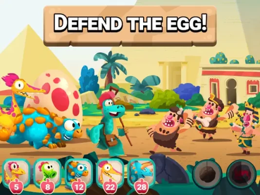 Get ready for an outrageously fun and wacky adventure back in time with Dino Bash! In this dinosaur game, you'll lead an army of powerful, wise-cracking dinos to defend your precious egg from pesky Neanderthals who are armed with nothing but clubs and bad attitudes.