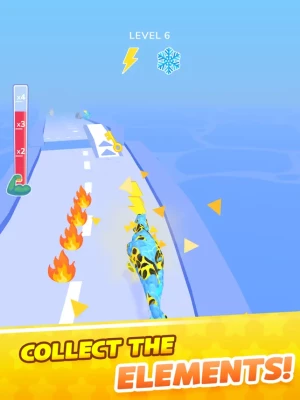 Collect elements to become the strongest dinosaur. Along the way, you will meet different elements that will improve your character and evolve it into a completely new monster. Get water, stone, electricity, fire and other elements to defeat everyone in your path. But be careful - different effects interfere with each other. Choose one element per race and collect it to get the maximum power-up.