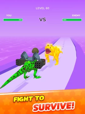 Dino Evolution Run 3D is an incredible race to the bottom in order to evolve and rise to the top of the food chain. Improve performance and run the perfect route. Choose the right elements and become a completely new creature. Defeat the boss and prove that you are the strongest! Ready to race? Download and play completely free!