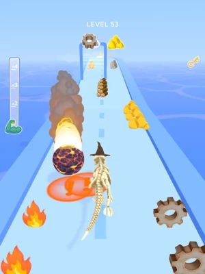 Run for upgrade elements to evolve into the ultimate creature that can become the top of the food chain. Move from side to side and collect bonuses of different elements to transform your dinosaur and become stronger. Think over your route, and use all your logic and dexterity to stay in the chosen way.