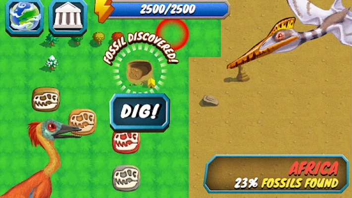 Gain game coins to improve your dig tools and museum, to receive even more game soft coins and hard coins. An adventure game that emphasizes exploration and puzzle-solving gameplay. You'll tap to explore and find different dinosaurs. Use a better strategy to find the rarest fossils and build your museum collection. Energy system improvements.