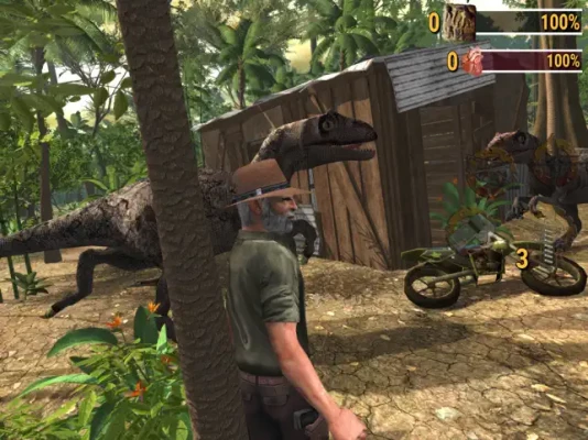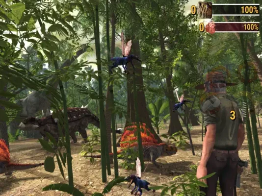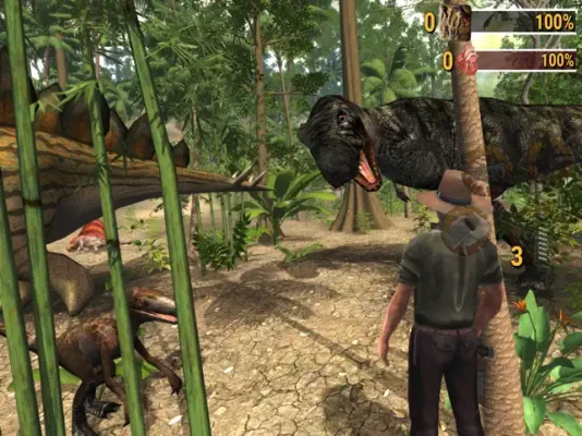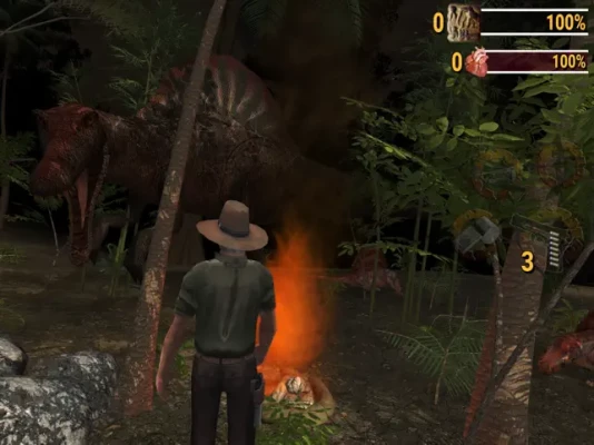 Build up your weapon supplies: A handgun for close encounters, a 4x4 off-road vehicle and rifle for sniper action, lay Mines to trap dinosaurs and the ones hunting you those Gas Canisters are very useful. Upgrade your Pistol - Crossbow(Explosive Arrows) and you equipped with a Compound Bow.