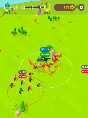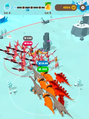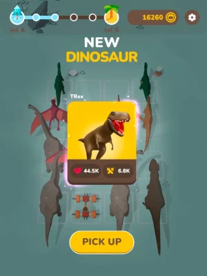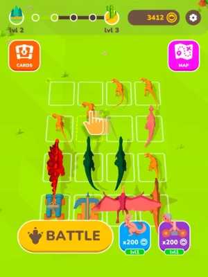 Match and combine similar dinos to unlock new more powerful dinosaurs. Evolve your prehistoric monsters and unlock all the dino warriors like T-Rex, Pterodactyl, and Triceratops.