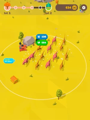 You’re not alone on the god forsaken dino island! In this Jurassic world, you should beware big groups of wild monsters, until your dinosaur army is ready to join the animal revolt battle!