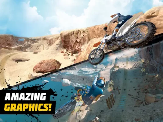 The lines get blurred between mobile and console graphics for two-wheel racing games. Feel the dirt fly and enjoy epic sunsets & vast landscapes as in real life.