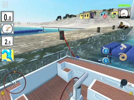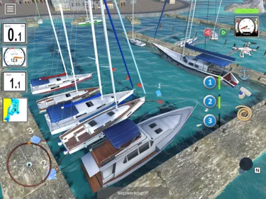 The basic concept behind Dock your Boat 3D is the same as for the first 2D Version: The boat and harbour-simulator for docking and undocking under engine helps the skipper to improve her/his skills in safe manoeuvring of yachts in different environments. It also allows to handle lines, fenders and anchor. The wind strength can be set individually depending upon desired degree of difficulty.