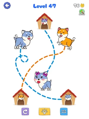 In Dog rush: Draw to save , your mission is to find the way to reach the dog house. Draw a line to connect dogs and their house. But how fastest you can go to help them out!