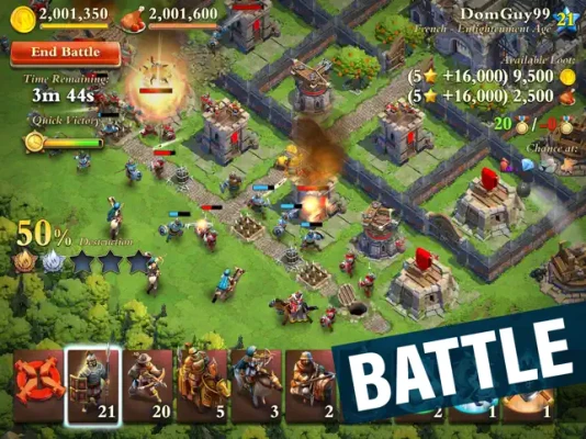 Greetings Leaders. Are you ready to dominate the world and battle through different areas of history? Engage in all out warfare in DomiNations! Build your empire and command nations as it grows from a small village to a thriving metropolis, and battle as one of the great civilizations from the history of the world.