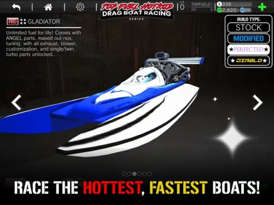 Build your engine the way you want to! TOP FUEL HOTROD features 100's of different part types resulting in unlimited combinations of ways to make your boat faster!