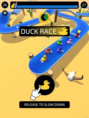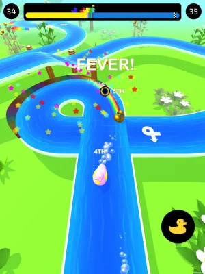 Super addictive racing game!Be the top duck and reach the tube first.Score points by knocking opponents off the track.