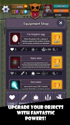 1. Shop & Stack – Each item grants a distinct buff: swords add raw damage, lightning trinkets chain-zap entire waves, magic shields layer absorption. Buy multiples to multiply their power and create your own meta-breaking build.