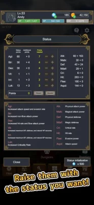 You can freely set AGI, STR, DEX, VIT, INT, and LUK to develop into your favorite hero.
