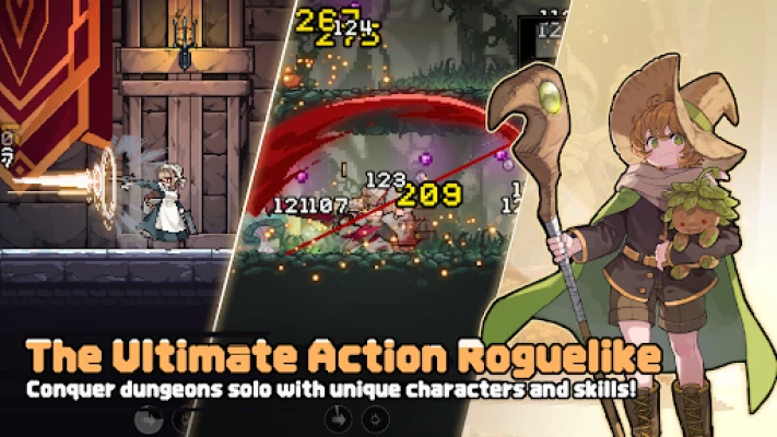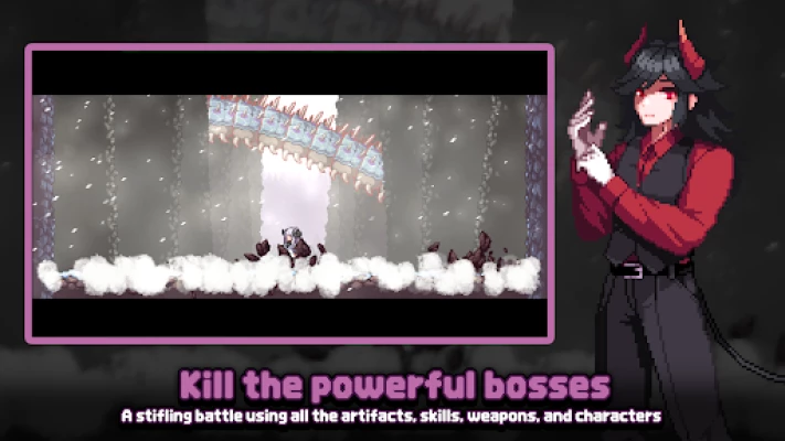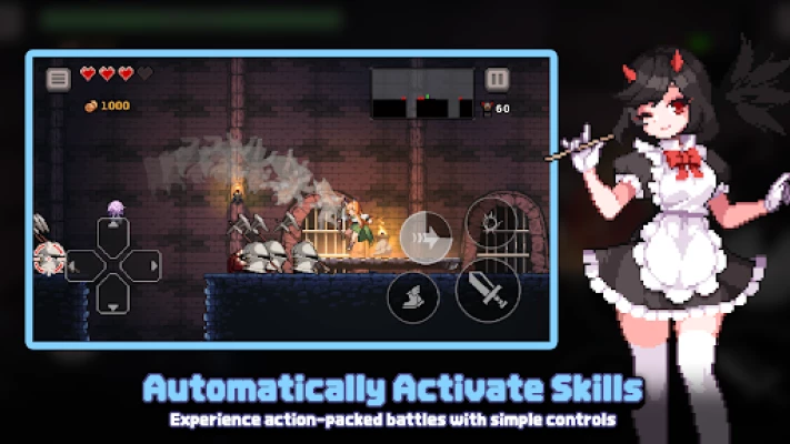 "Dungeon Slasher" is a roguevania pixelated side-scrolling action game, where you battle powerful enemies and bosses in thrilling 2D combat, utilizing the weapons and skills of diverse characters.