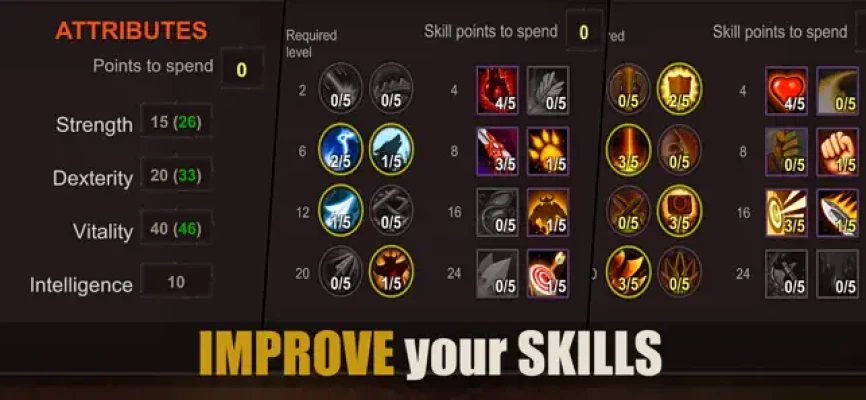 Play as a mighty Warden, shapeshifting Ranger or elemental Mage. Invest talent points to learn new skills such as spell reflection, lightning arrow or werewolf transformation. Learn passive talents or just increase stats to create exactly the character build you like.