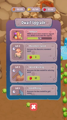 In "Dwarf Kingdom - Idle Survival," you start as a humble Dwarf builder with a small village. Your objective is to expand your territory, gather resources, and construct settlements. But here's the twist: instead of controlling your Dwarfs directly, you watch as they carry out tasks and progress on their own. It's a game of strategy, patience, and incremental growth. As you progress, you'll unlock various features and upgrades. Build essential structures such as farms, mines, and Automated generators to boost your resource production and train a formidable army. Discover new technologies to improve your Dwarfs efficiency in resource gathering.