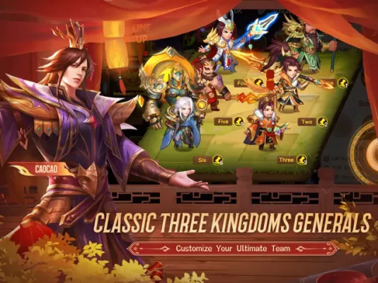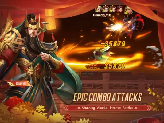 Assemble your ultimate team from legendary heroes like Liu Bei, Guan Yu, Zhang Fei, Cao Cao, Sun Quan, and Zhao Yun.