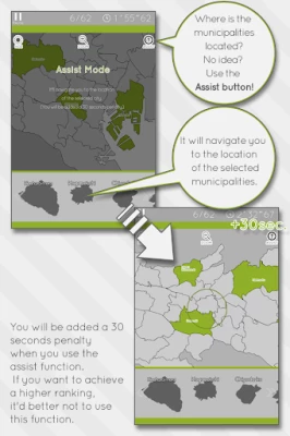 When you're stuck on finding the location of a municipalities, use the [Assist] function. It will help you to navigate the correct location without hassling yourself.