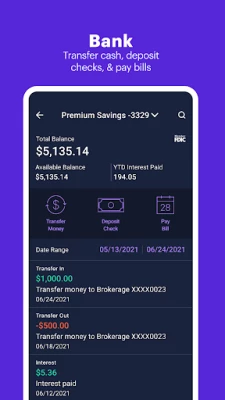 • Deposit checks, pay bills, transfer money, and get unlimited ATM fee refunds with your E*TRADE debit card.
