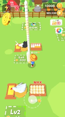 You have a small chicken farm. You need to buy chickens and let them lay eggs. Then, you should transport the eggs to the truck and sell them to earn income. You can keep upgrading the level of the chickens so that the eggs they lay are more valuable. When you have accumulated enough money, you can buy new breeds of chickens to lay different kinds of eggs. You can also hire workers to help you deal with these matters.
