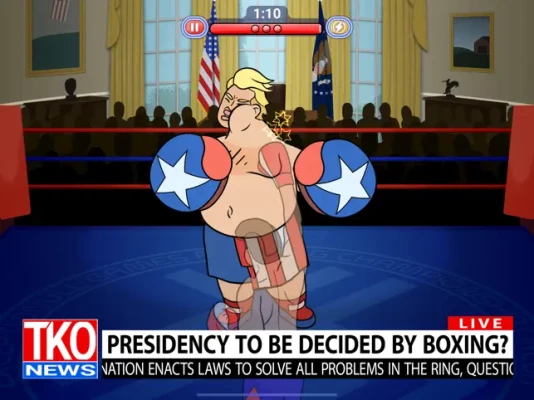 Create your own political party, lace up your boxing gloves, and punch your way to the White House in Election Year Knockout! In a country torn apart by its political divide, the nation has resorted to boxing to settle its differences. Fight your way through hilarious political opponents before squaring off with president Donald Thump himself!