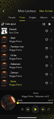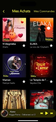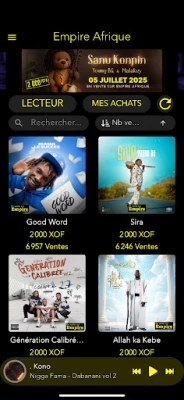 Fonctionnalités: - Voir tout le catalogue des sons gratuits et ceux en vente - Acheter les singles, mixtape ou album grâce au paiement sur mobile - Écoutez sans connexion internet les sons que vous avez achetés - Parcourir et lire le blog d'articles rédigés par la rédaction d'Empire Afrique - Parcourir les productions vidéos. Le visionnage se fait sur YouTube - Accéder au groupe de support client sur Telegram