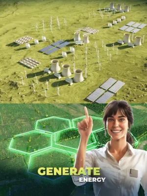 - Customize and upgrade wind turbines, solar panels, power plants and more