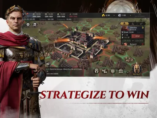 Recruit from over 100 different legendary Heroes to help you command your troops and manage your city! Get famous names in history, such as Julius Caesar, Alexander the Great, and Joan of Arc to help you establish your indomitable empire!