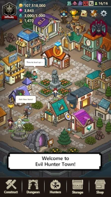 Handle everything starting from Town construction to craft, sale, and training Hunters!
