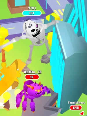 Evo Crazy Beasts 3D has 2 main game modes - “classic” and “destruction”. In classic mode you have to fight against other monsters, evolve your beast and climb to the top of the leaderboard. Will you be able to defeat all opponents and remain the only survivor on the map? But remember, it won't be simple. Giant opponents can be dangerous, so try to avoid them until you are the same size as them. And when you evolve into the biggest monster on the map - charge into battle and dominate!