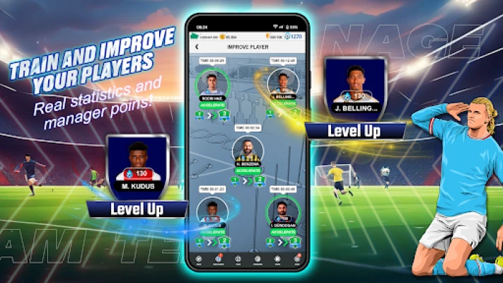 - Actual Players & Teams: Manage real players and compete with iconic football clubs.