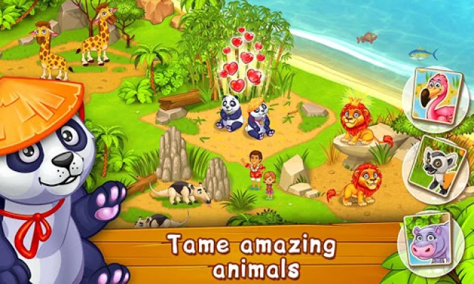 Entire tropical farm at your disposal: ★ Grow a fresh crop; ★ Build your own hotel and invite guests; ★ Tame the most amazing animals: lions, zebras and panda bears ★ Create your own Zoo. Invite lovely pet and pets on island and make them happy; ★ Build island airport, steamboat and invite tourists; ★ Find old ruins and artifacts; ★ Prepare your villagers to unforgettable adventure!