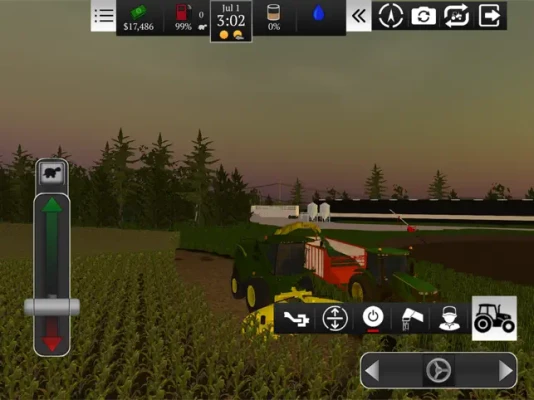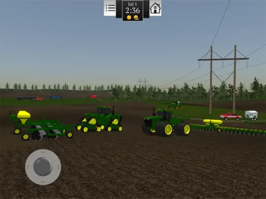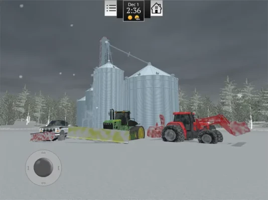 Watch the weather as rain and sun affects the growth and harvest of crops! Too much rain and your fields become muddy. A hard snow in winter will require you to hook up the snow plows to get out of the lot.
