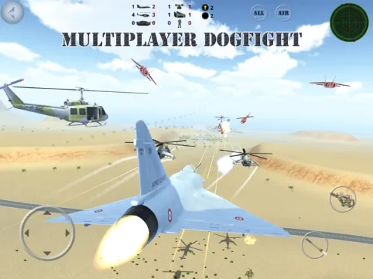 Fighter 3D Multiplayer is a multiplayer air combat game.Fight against pilots from all over the world in furious air combat.Prove that you are the best handling fighter planes!You can also handle helicopters and anti-aircraft, the aerial battle is total.Add victories in game center and compare your results with the other pilots.