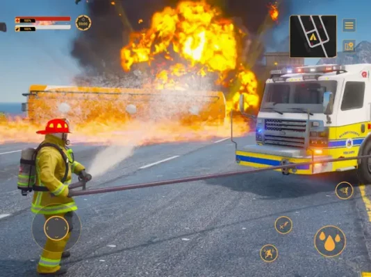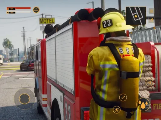 In the game FireFighter Squad, you have to try on the role of a real fire brigade worker in a large American city. Players will experience exciting tasks, more than 30 different locations, inspired by the landscapes of the US West Coast. Drive carefully recreated Rosenbauer America vehicles, extinguish fires and have fun with the game.