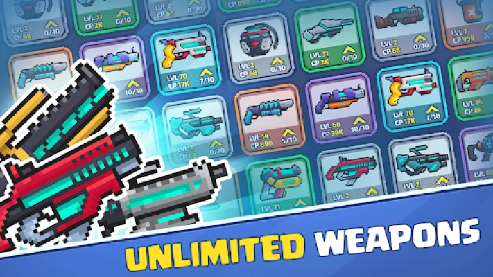 Test yourself and fight fire even offline. Upgrade your pixel gun and equipment as you progress through levels filled with dangerous monsters. Explore the depths of the pixel dungeon and fight fiery bosses as you fight for survival. Destroy all of them in this battle game!🏆