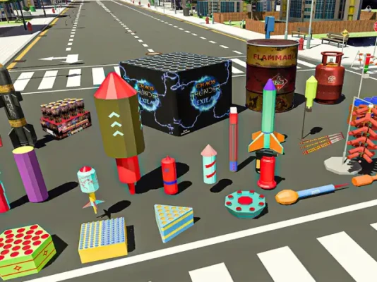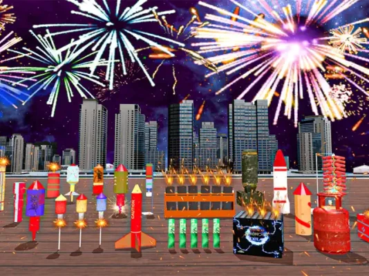 Do you enjoy fireworks on Diwali? Do you want to design your spectacular shows? Do you want to have fun with explosive items and props? If yes, then Fireworks Games Cracker 3D is the game for you. A fireworks cracker simulator 3D game with 3D graphics and realistic fireworks effects to uplift your enjoyment of the Diwali festival, Christmas, or New Year's fireworks night without causing pollution in the environment. That will make you feel like you are in a real fireworks show in fireworks games cracker simulator3d game. You can explore different smoke-free maps and scenarios and light up the sky with various types of fireworks while sitting on your couch.