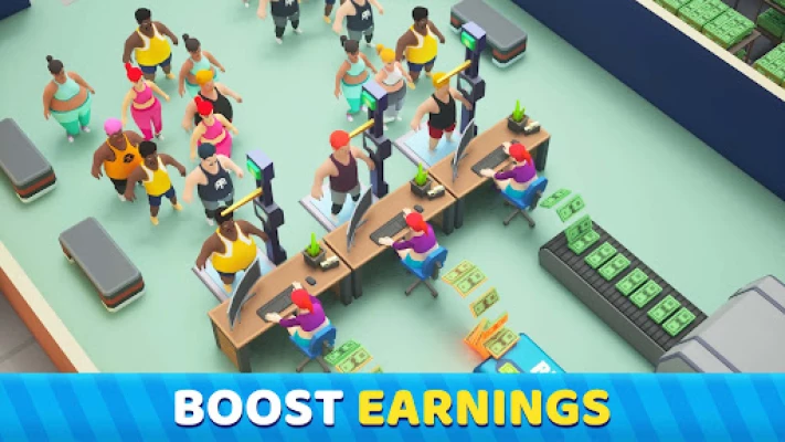 There are treadmills, battle ropes, swimming, calisthenics, boxing and a wealth of other sports, each with a unique and interesting visual animations. Watch the guests working out hard in each gym and feel the fat burning!! You'll even move along with the poses of the customers to the upbeat music!