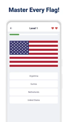 Whether you're a student preparing for a geography exam, a traveler eager to recognize flags on your next trip, or simply curious about the world, this app is perfect for you. Regular updates keep the content fresh and exciting, introducing new flags and challenging game modes. Download now and transform your spare moments into an educational adventure in flag recognition. With every quiz, you'll gain a deeper appreciation for the diverse symbols that represent nations around the world.