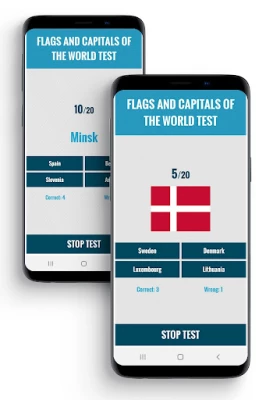 The app contains as well a widget displaying flags, country names and their capitals, which you can add to a chosen screen on your phone.