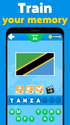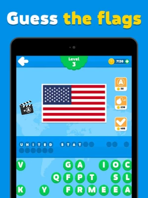 Flags quiz game - guess the flag is an addicting word puzzle game you can play alone or with friends! With free brain games, exciting picture packs, challenging word puzzles and tons of word puzzle games to play, you'll have endless hours of brain training fun! Guess the word, earn coins & train your brain wherever you are. Numerous achievements to record your game progress