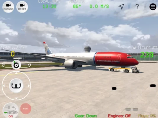 • Feel what it's like flying inside the cockpit of a real aircraft.• Interact with cockpit buttons, switches and levers.• Push-back, taxi to runway, take-off, fly, land.