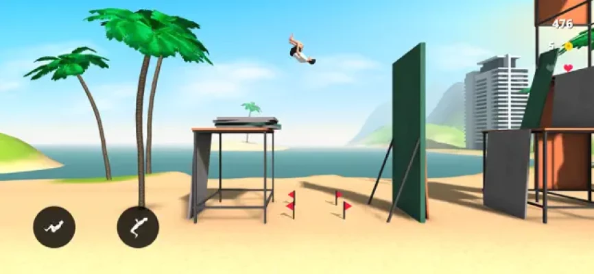 Flip Range is a game with elements of parkour and acrobatics, in which you have to perform more than 70 combinations of tricks from various buildings, horizontal bar or on a plane. Learn new tricks, improve the strength of the jump and the speed of rotation in the air, and become a real master of extreme jumps. Collect as many points as possible at all levels and take first place in the world leaderboard.
